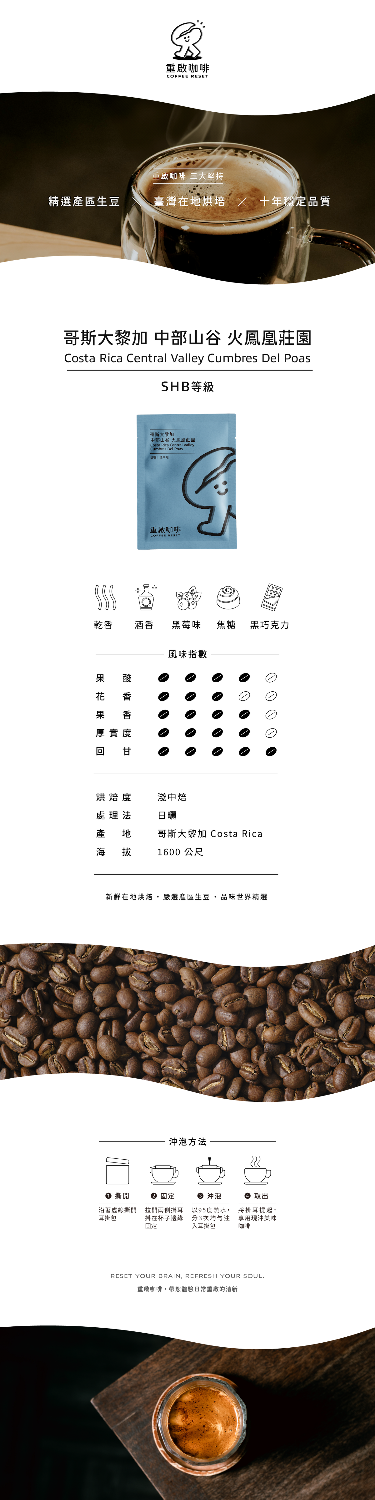 ● 咖啡豆新鮮現烘,下單後約1~2個工作天出貨,如有急需請先與重啟咖啡確認唷!感謝您為一杯高品質咖啡的耐心等候。