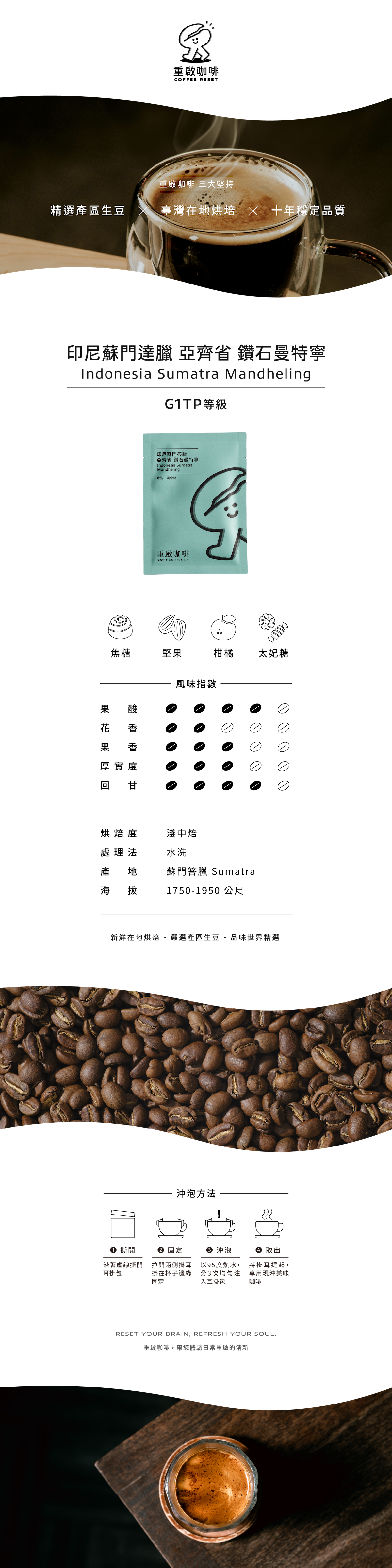 ● 咖啡豆新鮮現烘,下單後約1~2個工作天出貨,如有急需請先與重啟咖啡確認唷!感謝您為一杯高品質咖啡的耐心等候。